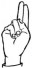 На ћирилици написано ДИНА БЕТЕГАЛО састоји се из 12 слова [?]. Исписано ћириличном једноручном азбуком за глувонеме: